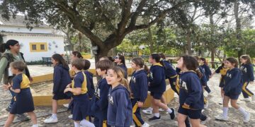 Los alumnos de Educación Primaria, acompañados por todo el claustro...
