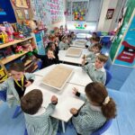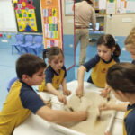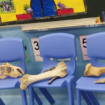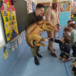 Los alumnos se convirtieron en paleontólogos ,buscaron fósiles de dinosaurios y tuvieron la ocasión de conocer y hacer carreras con una maqueta, muy conseguida, de un tiranosaurio Rex.