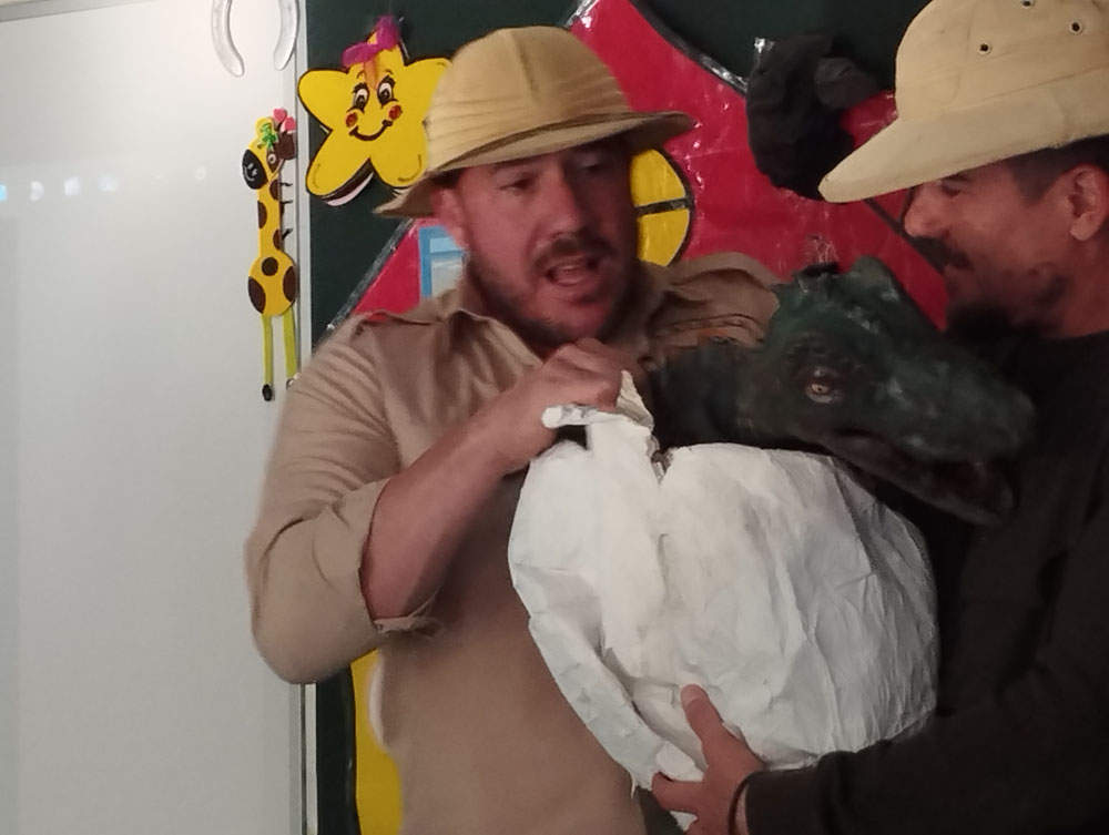 Tuvimos la visita especial de unos “ paleontólogos” y con ellos pudimos conocer la vida de estos animales extinguidos, de cómo vivieron, cómo nacían y cómo se alimentaban.
