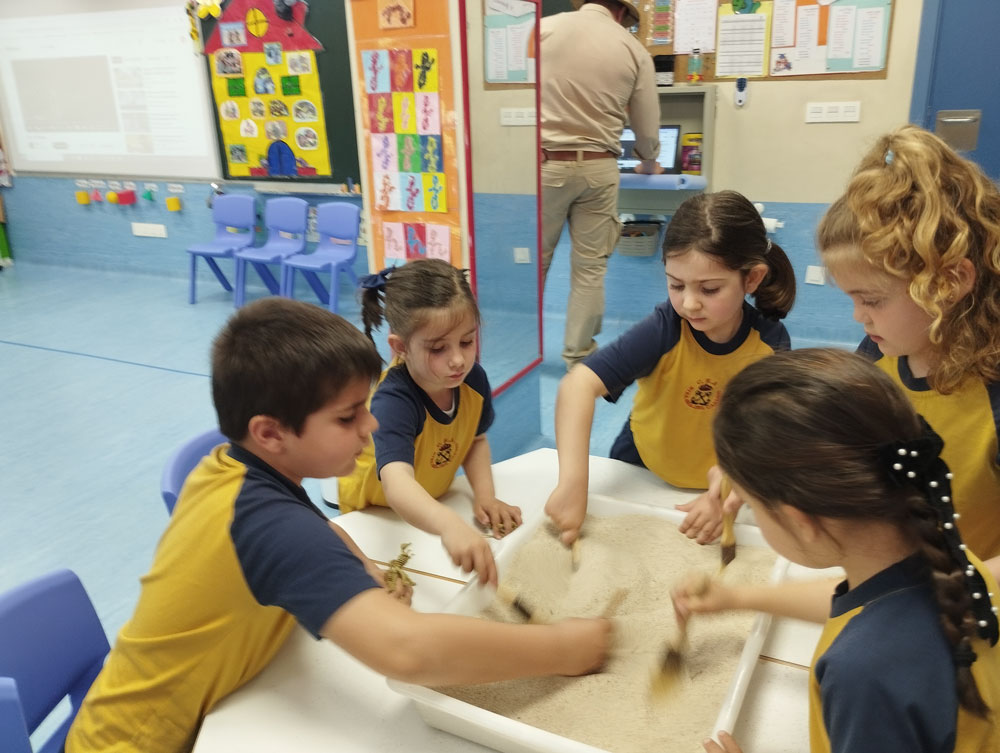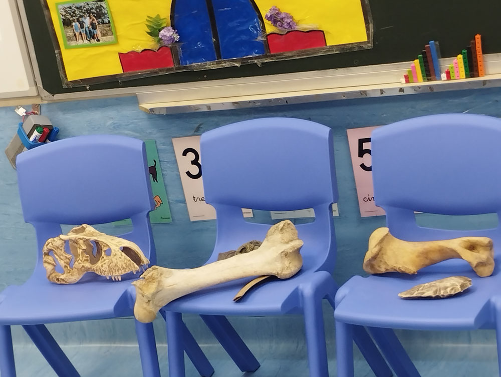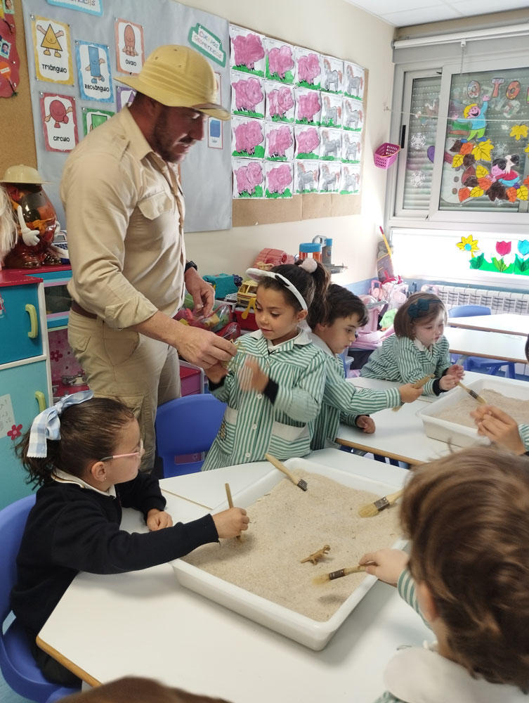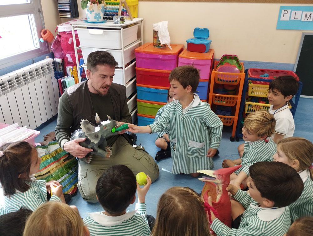 Los alumnos se convirtieron en paleontólogos ,buscaron fósiles de dinosaurios y tuvieron la ocasión de conocer y hacer carreras con una maqueta, muy conseguida, de un tiranosaurio Rex.