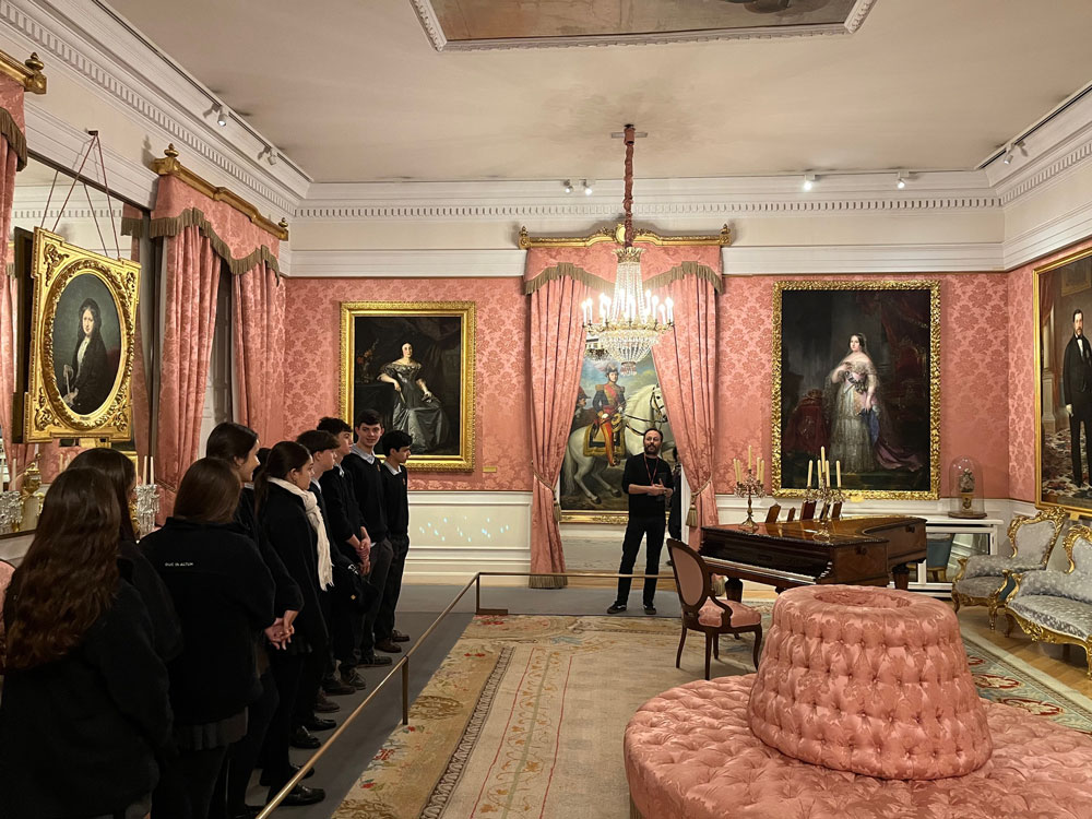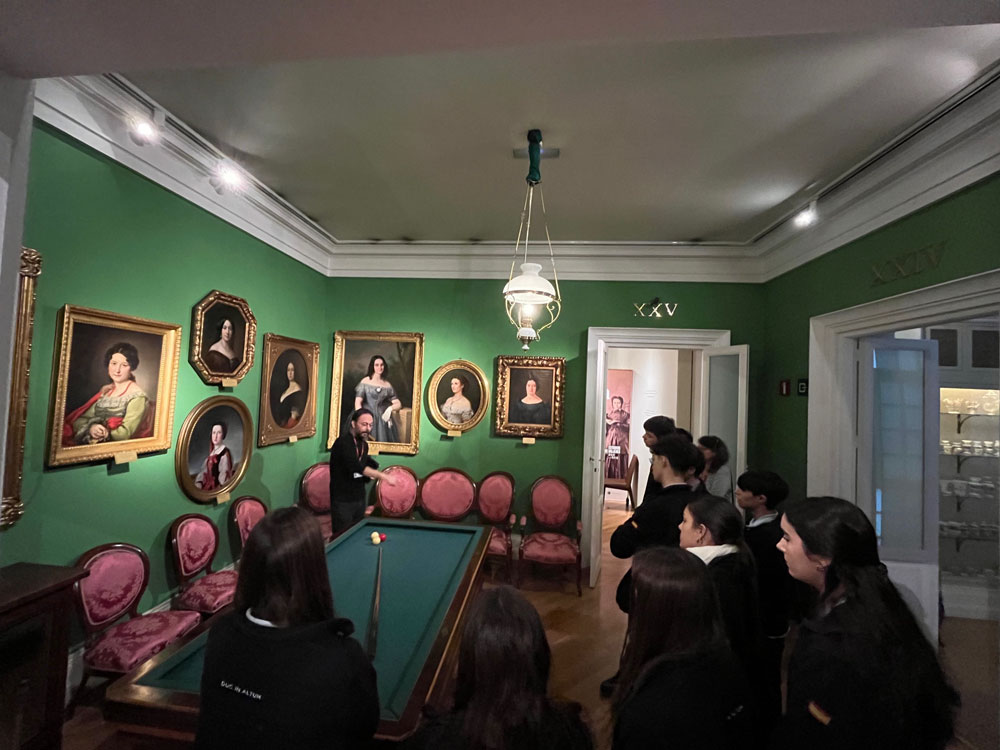 A través de sus diferentes salas (26) y de sus piezas principales los alumnos pudieron conocer aspectos de una sociedad, de una época y de un período artístico -el Romanticismo- que se desarrolla cronológicamente en España entre 1833 y 1868 (reinado Isabel II), y que recrea la vida cotidiana y las costumbres de la alta burguesía durante el Romanticismo, complementando de manera práctica los contenidos trabajados en clase.
