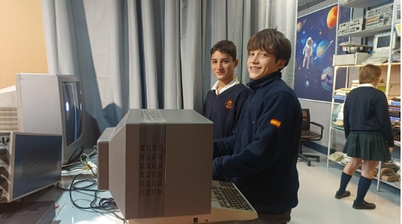 La actividad consistió en conocer la historia de la comunicación y su evolución hasta la actualidad. El recorrido abarcó desde los primeros sistemas de comunicación –como las señales de humo, las campanas o el envío de cartas– hasta la llegada del telégrafo y el código morse, con el que los estudiantes enviaron mensajes en directo. La experiencia continuó explorando inventos que revolucionaron el mundo: vieron el funcionamiento de gramófonos, magnetófonos, cámaras de vídeo y fotografía antiguas, ordenadores pioneros y, por supuesto, el mítico primer Apple.