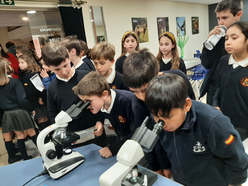 Los grupos de 4º de E. Primaria, acompañados de sus tutoras, realizaron un recorrido por la diversidad del mundo natural: biodiversidad, evolución humana, fósiles… Visitaron la exposición del legado histórico del médico y científico Santiago Ramón y Cajal. Posteriormente, asistieron a un taller sobre microbios y vacunas, en el que realizaron actividades en grupo de práctica y observación.