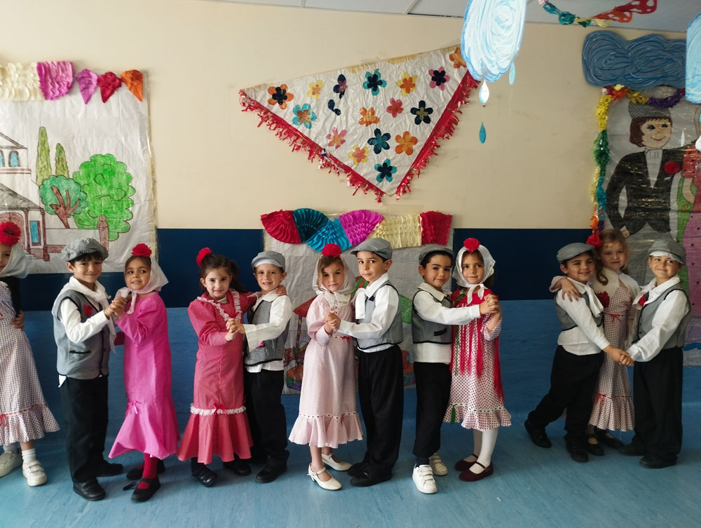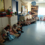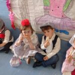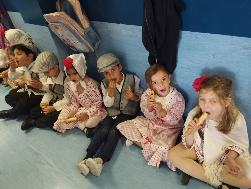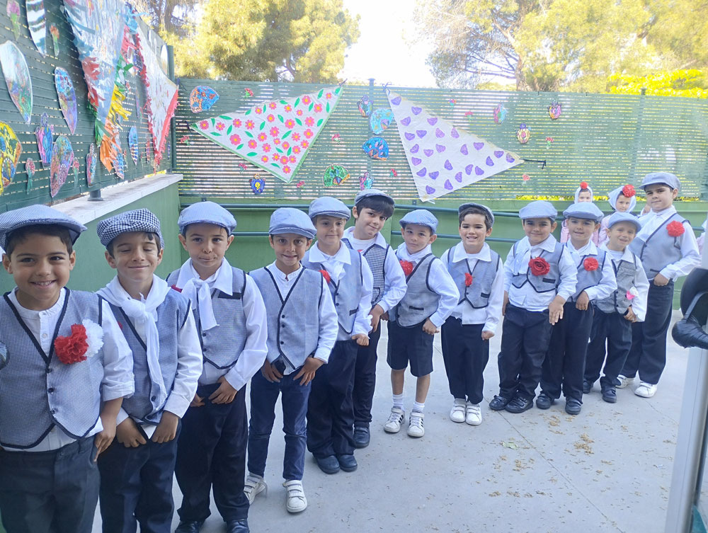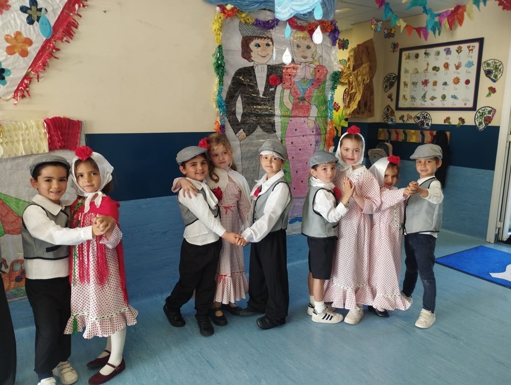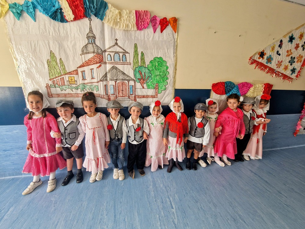 Los niños y los profes nos disfrazamos de chulapos y chulapas, realizamos talleres de manualidades, tomamos barquillos del Santo, rosquillas de limón, hicimos fotos, bailamos el chotis y terminamos la jornada con “discobaby” en el patio.